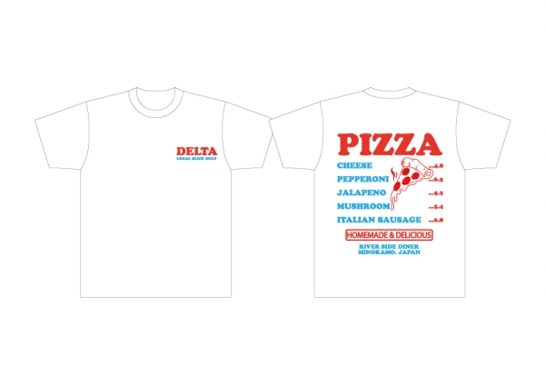 CAFE & PIZZA DELTAのNEW T-SHIRTS発売します!バックプリントにピザメニューを載せてRED&LIGHT...